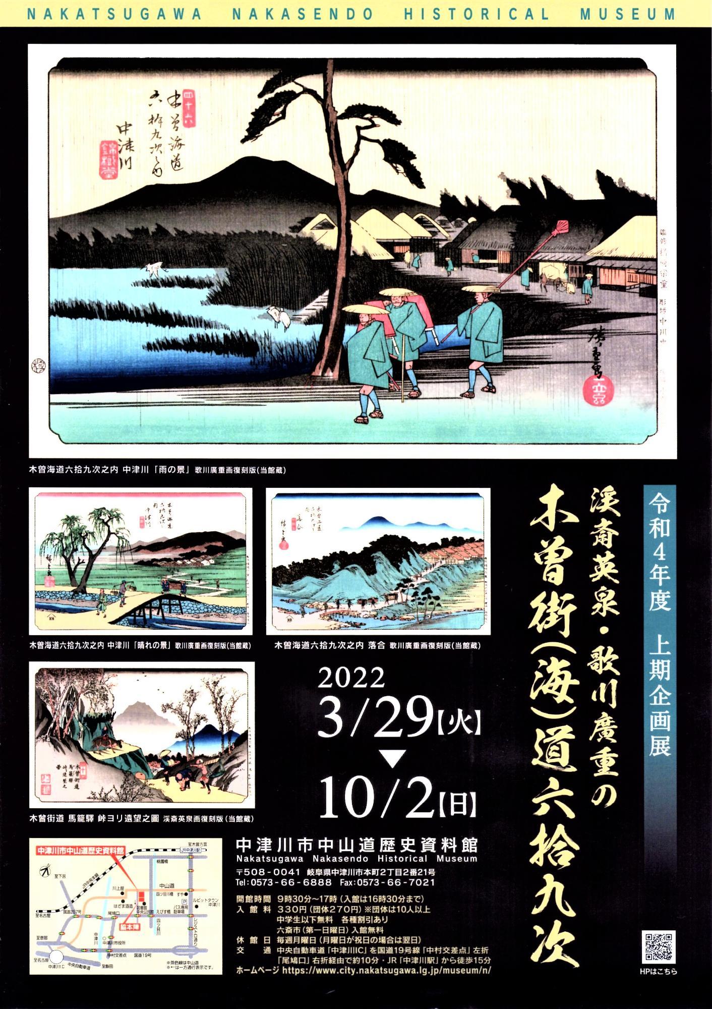3月29日から令和4年度上期企画展 『渓斎英泉・歌川廣重の木曽街(海)道六拾九次』が開催されます。