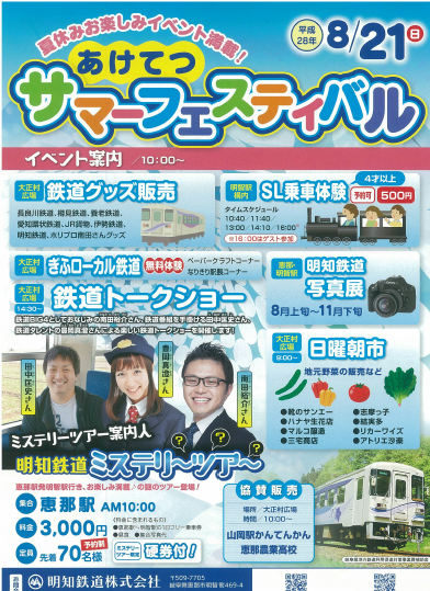 明知鉄道のイベント「あけてつサマーフェスティバル」を開催します。