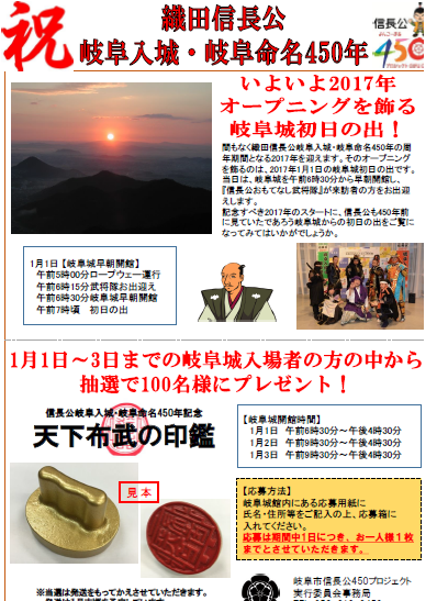 2017年は、織田信長公の岐阜入城・岐阜命名から