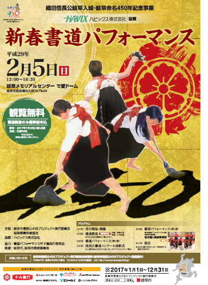 2月5日には、ぎふメモリアルセンターで「新春書道パフォーマンス」を開催します。