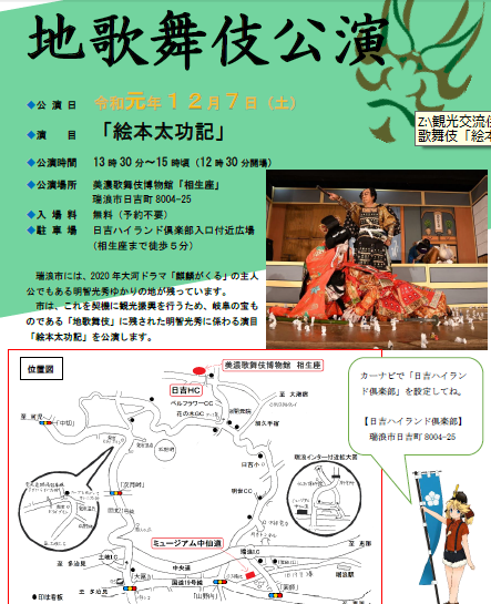 地歌舞伎公演は、12月7日(土)午後1時30分から瑞浪市日吉町の美濃歌舞伎博物館