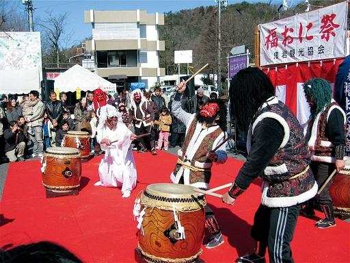 バサラ踊りと太鼓、そして福おに豆まきが行われます。